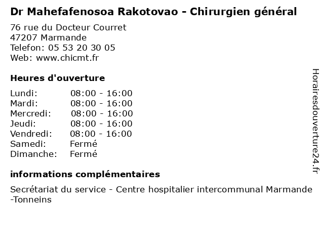 Termes de recherche pour Dr Mahefafenosoa Rakotovao - Chirurgien général:marmande, tonneins, centre, general, soins, généraliste, hospitalier, dr, intercommunal, chirurgien, rakotovao, chiurgie, mahefafenosoa |