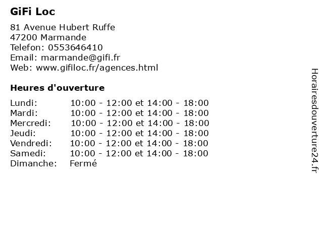 1 GiFi (Distance: 1,43 km) - Tonneins, 47200 Marmande bureau, cuisine, décoration, gifi, jardin & plein air, salle à manger, salon, stockage - salle 2 GiFi (Distance: 2,36 km) - Route de Tonneins, 47200 Marmande cuisines, decoration, entretien, gifi, jardin, linge de maison, mobillier 3 RÉGIS LOC MARMANDE (Distance: 5,94 km) 66 Avenue François Mitterrand, 47200 Marmande loc, marmande, régis 4 Régis Loc (Distance: 6,08 km) - La Bergerie, 47200 Marmande chantiers, engins, loc, location, régis, Équipements 6 Fram - Ambassade (Distance: 15,38 km) - Leclerc, 47400 Tonneins agence, ambassade, billet d'avion et hôtel pour votre club, fram, séjour, voyage |