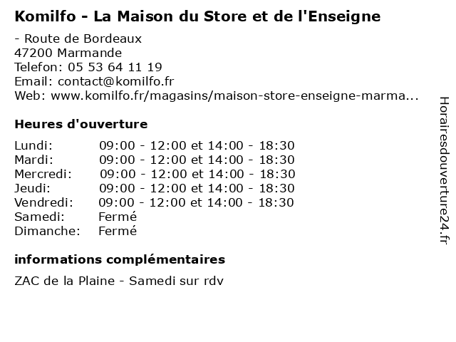 | Mardi | 09:00-12:00 et 14:00-18:30 |