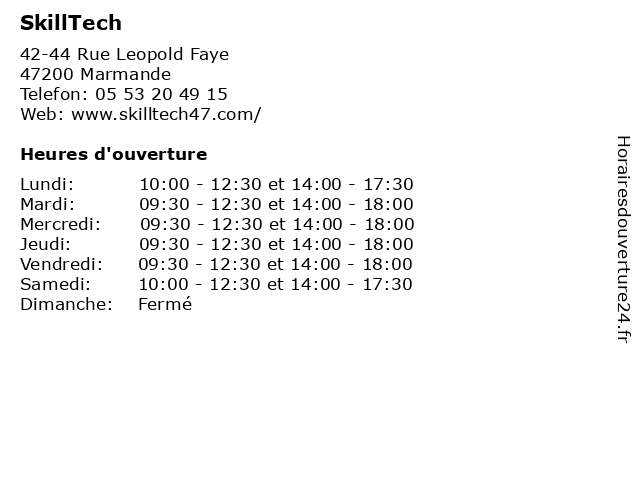| Mardi | 09:30-12:30 et 14:00-18:00 |