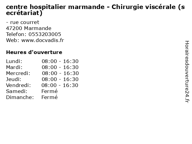 Termes de recherche pour centre hospitalier marmande - Chirurgie viscérale (secrétariat):marmande, centre, santé, secretariat, hospitalier, chirurgie, viscérale, docteur, consultation |