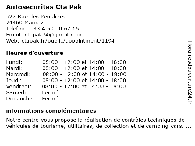 1 PAK AUTO (Distance: 0,00 km) 527 Rue des Peupliers, 74460 Marnaz auto, garage automobile marnaz, pak, pneu 4 saisons marnaz, pneu hiver marnaz, pneu michelin marnaz, pneu moto marnaz, pneu pas cher marnaz, promo pneu marnaz, promotion pneu marnaz, revision voiture marnaz, vidange voiture marnaz 2 Auto Sécurité CTA Morand (Distance: 16,22 km) 997 Avenue André Lasquin, 74700 Sallanches auto, cta, morand, sécurité 3 Confort Auto - Marnauto (Distance: 1,41 km) 169 Rue du Loisin, 74460 Marnaz auto, automobile, automoto, autovision, confort, contrôle technique, marnauto, pak, r&r 4 Autosecuritas Controle Technique du Lac (Distance: 38,85 km) 11 Impasse de la Pierre à Feu, 74330 La Balme-de-Sillingy autosecuritas, controle, du, lac, technique |