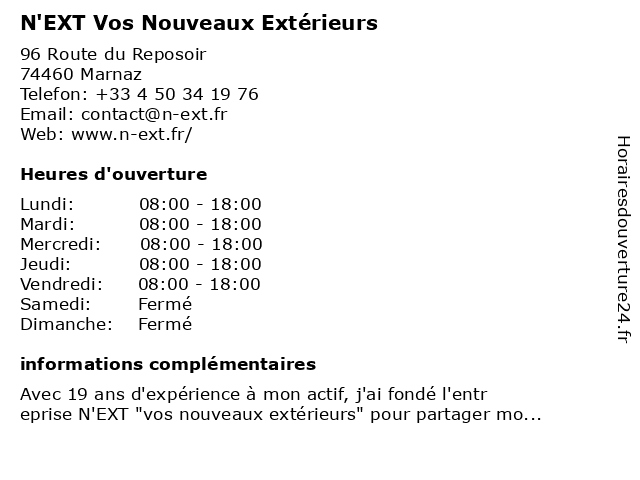 | Lundi | 08:00-18:00 |