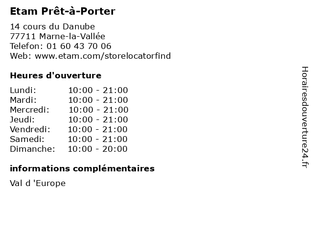 1 Etam Lingerie (Distance: 0,00 km) 14 cours du Danube, 77711 Marne-la-Vallée accessoires, etam, femme, lingerie, mode 2 Etam Lingerie (Distance: 8,88 km) s/n rue du Général de Gaulle, Centre Commercial Régional Bay 2, 77090 Collégien etam, lingerie, vêtements de nuit 3 Etam (Distance: 12,28 km) . Route Nationale 3, 77410 Claye-Souilly alimentation, beauté & santé, culture & loisirs, enfants, etam, high-tech, maison & déco, mode, restaurants 4 Sampa Prêt-à-Porter Féminin (Distance: 13,77 km) 9 Rue de la Cordonnerie, 77100 Meaux accessoires, boutique, femme, féminin, mode, porter, prêt, sampa, vêtements 5 Etam Lingerie (Distance: 15,70 km) . Rue Monthéty, 77340 Pontault-Combault alimentation, beauté & sante, culture & loisirs, enfants, etam, high-tech, lingerie, maison & déco, mode, restaurants 6 Etam (Distance: 17,03 km) 234 Boulevard du Mont d'Est, 93193 Noisy-le-Grand alimentation, beauté & santé, culture & loisirs, enfants, etam, high-tech, maison & déco, mode, restaurants |