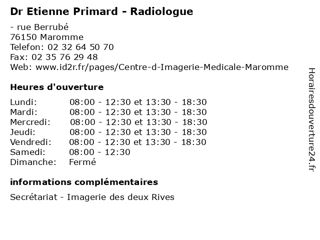 | Mercredi | 08:00-12:30 et 13:30-18:30 |