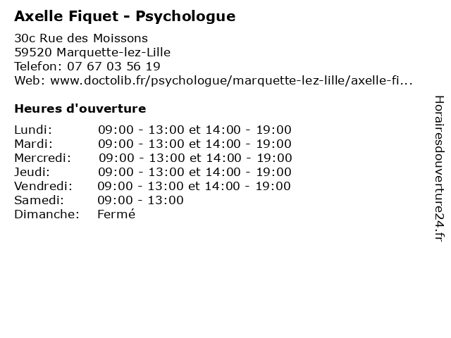 | Mardi | 09:00-13:00 et 14:00-19:00 |