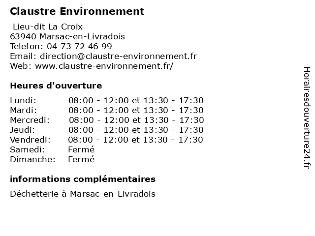 | Samedi | Fermé |