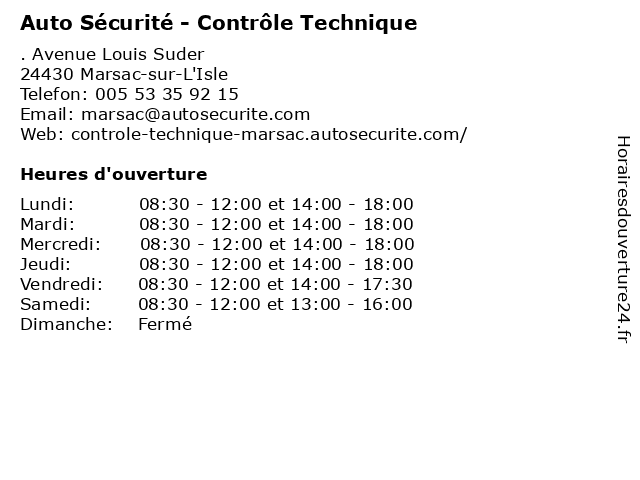 | Samedi | 08:30-12:00 et 13:00-16:00 |