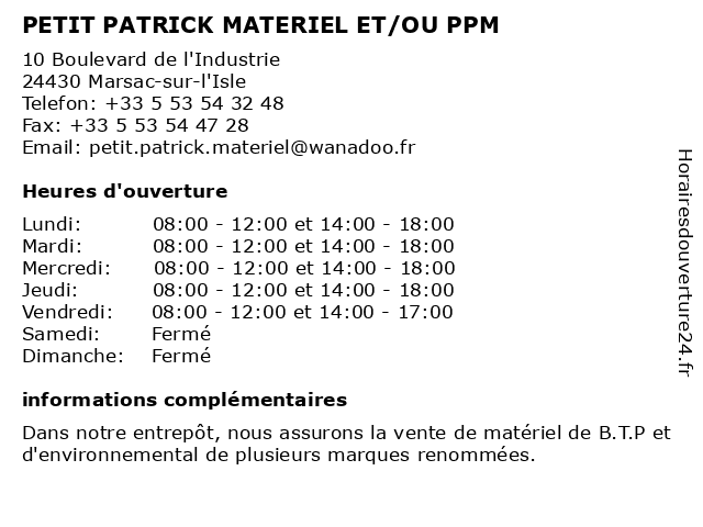 Termes de recherche pour PETIT PATRICK MATERIEL ET/OU PPM:petit, patrick, matériel, ppm, et/ou |