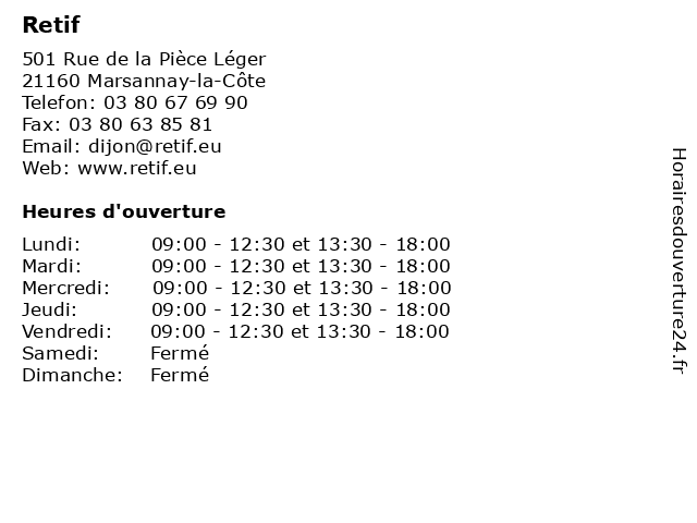 | Mercredi | 09:00-12:30 et 13:30-18:00 |