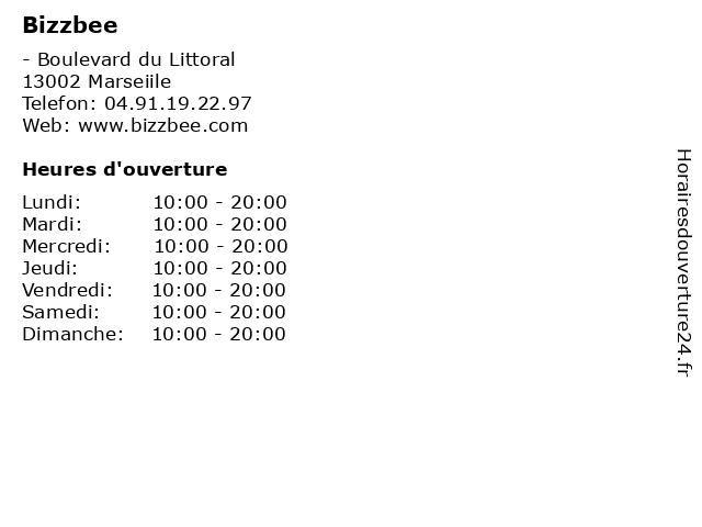 | Dimanche | 10:00-20:00 |