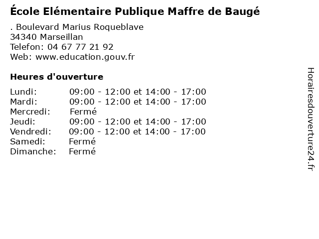 | Mardi | 09:00-12:00 et 14:00-17:00 |