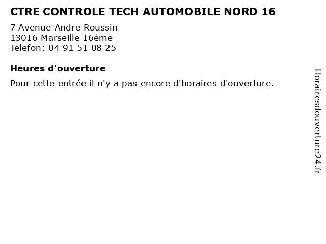 | Appeler CTRE CONTROLE TECH AUTOMOBILE NORD 16 | |