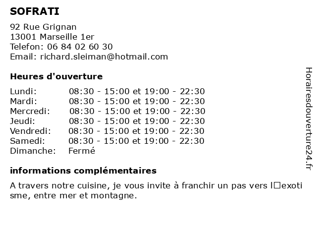 | Samedi | 08:30-15:00 et 19:00-22:30 |