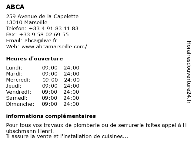 | Samedi | 09:00-24:00 |