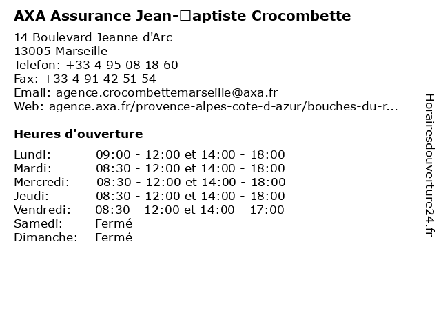 | Mardi | 08:30-12:00 et 14:00-18:00 |