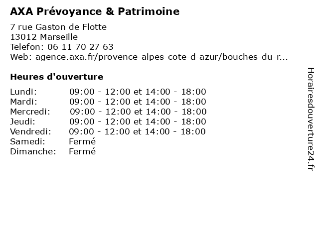 1 AXA Prévoyance & Patrimoine (Distance: 1,10 km) 3 avenue Maréchal Ney, 13011 Marseille assurance, axa, patrimoine, prevoyance, prévoyance, retraite, santé 2 AXA Prévoyance & Patrimoine (Distance: 2,47 km) 5 boulevard Joseph Piazza, 13012 Marseille assurance, axa, patrimoine, prevoyance, prévoyance, retraite, santé 3 AXA Prévoyance & Patrimoine (Distance: 2,90 km) 12 rue Menpenti, 13006 Marseille assurance, axa, patrimoine, prevoyance, prévoyance, retraite, santé 4 AXA Prévoyance & Patrimoine (Distance: 3,55 km) 2 rue Rouvière, 13001 Marseille assurance, axa, patrimoine, prevoyance, prévoyance, retraite, santé 5 AXA Prévoyance & Patrimoine (Distance: 3,79 km) 27 boulevard Lord Duveen, 13008 Marseille assurance, axa, patrimoine, prevoyance, prévoyance, retraite, santé 6 AXA Prévoyance & Patrimoine (Distance: 5,25 km) 124 chemin du Vallon de l'Oriol, 13007 Marseille assurance, axa, patrimoine, prevoyance, prévoyance, retraite, santé |