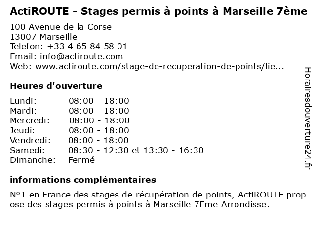 | Samedi | 08:30-12:30 et 13:30-16:30 |