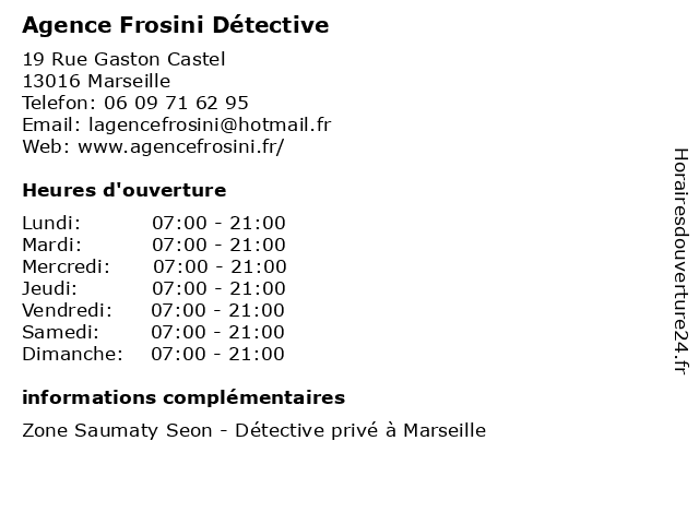 1 Filippini Détective (Distance: 9,21 km) 65 avenue Jules Cantini, 13006 Marseille agence, détective, enquête, filippini, privé 2 Massilia Investigations (Distance: 7,82 km) 51 Rue Sainte, 13001 Marseille agence, détective, enquête, investigations, massilia, privé 3 Investiga France (Distance: 8,17 km) 37 Boulevard Notre Dame, 13006 Marseille bureaux, détective, france, investiga, privé, professionnels, recherche 4 Groupe Prometheus (Distance: 9,74 km) 180 Avenue du Prado, 13008 Marseille agence, détective privé, groupe, investigations, prometheus 5 Fides Investigations (Distance: 10,24 km) 1 boulevard Onfroy, 13008 Marseille agence, détective, enquête, fides, investigations, privé 6 Duverger Investigation (Distance: 12,62 km) 2B Montée de l'Amandier, 13011 Marseille agence, duverger, détective, enquête, investigation, privé |