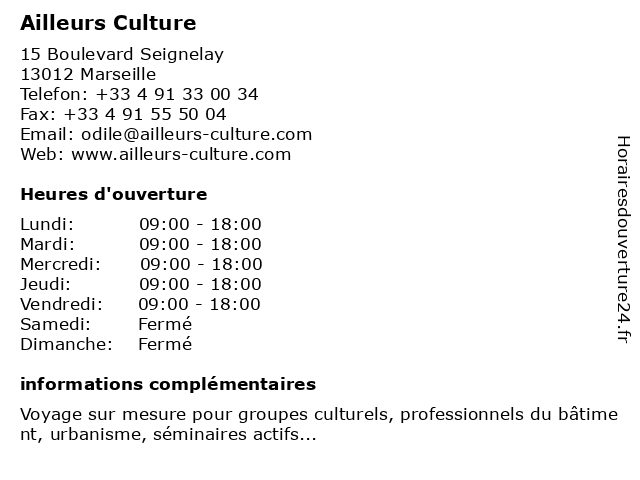 1 AILLEURS VOYAGES SELECTOUR (Distance: 1,01 km) Rue Léon Meisserel, 13012 Marseille ailleurs, selectour, voyages 2 Selectour - Ailleurs Voyages (Distance: 1,95 km) - Saint Barnabé Village, 13012 Marseille ailleurs, billets de train, selectour, séjours, vols, voyage, voyages 3 L'Atelier d'Ailleurs - Ou la Fabrique de l'Imaginaire (Distance: 2,37 km) 314 Boulevard Chave, 13005 Marseille d'ailleurs, de, fabrique, formation, l'atelier, l'imaginaire, la, organisation, ou, scolaire, universitaire, éducatif 4 Ailleurs (Distance: 2,69 km) 9 av. du Maréchal Foch, 13004 MARSEILLE ailleurs, circuits, cruises, packages, rentals, stays, travel 5 Ailleurs Voyages (Distance: 3,73 km) 117 Traverse de la Montre,, 13011 Marseille ailleurs, divertissements, loisirs, tourisme, voyages 6 Restaurant Saveurs d'ailleurs (Distance: 4,20 km) 74 avenue Jules Cantini, 13008 Marseille d'ailleurs, halal, restaurant, restaurant syrien, saveurs, vegetarien |