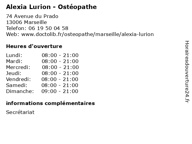 | Samedi | 08:00-21:00 |