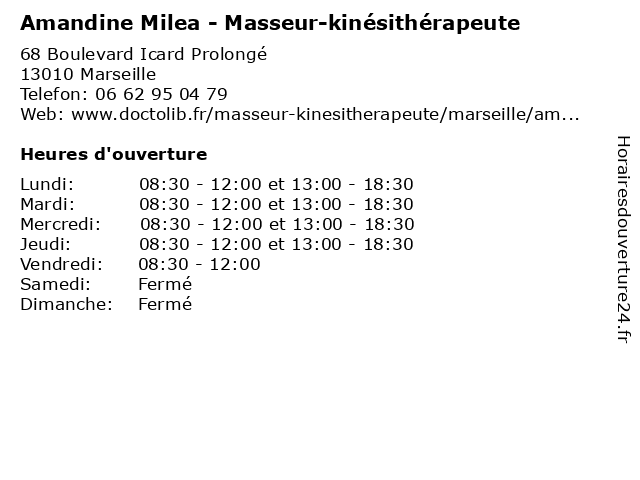| Lundi | 08:30-12:00 et 13:00-18:30 |