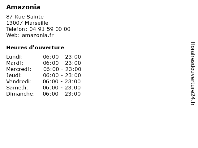 | Samedi | 06:00-23:00 |