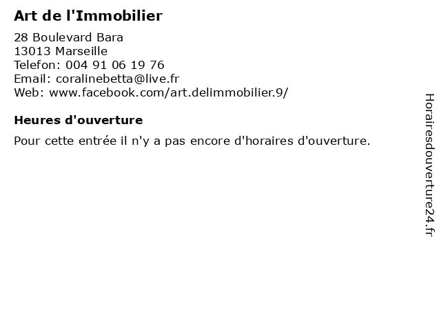 1 Art de l'Immobilier (Distance: 0,00 km) 28 Boulevard Bara, 13013 Marseille agence, art, de, gestion, immobilier, immobilière, l'immobilier, location, service, transaction, vente 2 Beautiful Nails Art (Distance: 5,98 km) 27 Rue Raymondino, 13003 Marseille art, beautiful, handyman, nail, nails 3 SEIZE Galerie - Art & éditions limitées (Distance: 7,97 km) 16 rue de fontanges, 13006 Marseille art, artists, galerie, gallery, limitées, seize, éditions 4 Relais Colis® / ART FLOREM (Distance: 8,13 km) 253 Avenue du 8 mai 1945, 13240 Septèmes-les-Vallons art, colis, colis®, florem, relais, services postaux et de livraison 5 David Pluskwa Art Contemporain (Distance: 8,45 km) 53 Rue Grignan, 13006 Marseille art, artists, contemporain, david, gallery, pluskwa 6 Art et Fenêtres (Distance: 8,63 km) 8 Avenue Jules Cantini, 13006 Marseille art, doors, entrance doors, et, fenêtres, gates and fences, shutters, windows |