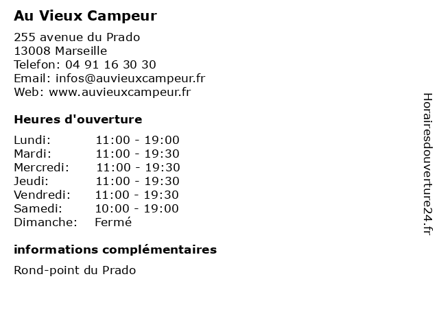 | Dimanche | Fermé |