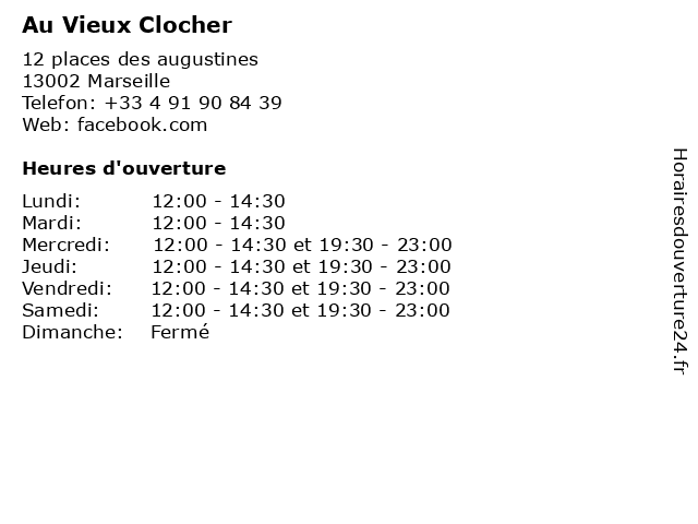 | Mercredi | 12:00-14:30 et 19:30-23:00 |
