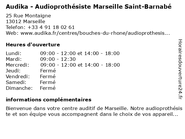 Termes de recherche pour Audika - Audioprothésiste Marseille Saint-Barnabé:saint, marseille, barnabe, appareil auditif, audika, audioprothésiste, specialiste audition, audiologiste, centre auditif |