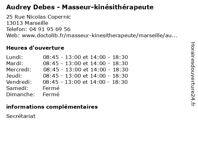 Lundi | 08:45-13:00 et 14:00-18:30 |