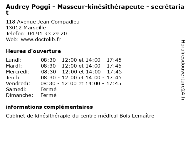 | Mardi | 08:30-12:00 et 14:00-17:45 |