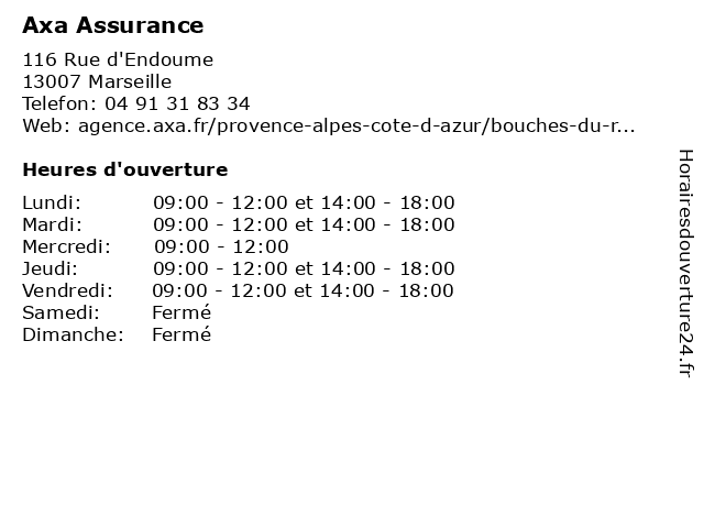 1 Axa Assurance (Distance: 0,36 km) 79 Avenue De La Corse, 13264 Marseille assurance, assurance prêt, assurances, axa, services 2 Axa Assurance (Distance: 1,18 km) 16 Rue Beauvau, 13001 Marseille assurance, assurance prêt, assurances, axa, services 3 Axa Assurance (Distance: 1,19 km) 5 Rue De L Eveche, 60400 Noailles assurance, assurance prêt, assurances, axa, services 4 Axa Assurance (Distance: 1,43 km) 30 Rue Du Docteur Fiolle, 13006 Marseille assurance, assurance prêt, assurances, axa, services 5 Axa Assurance (Distance: 1,82 km) 22 Boulevard Baille, 13006 Marseille assurance, assurance prêt, assurances, axa, services 6 Axa Assurance (Distance: 2,81 km) 177 Boulevard Chave, 13005 Marseille assurance, assurance prêt, assurances, axa, services |