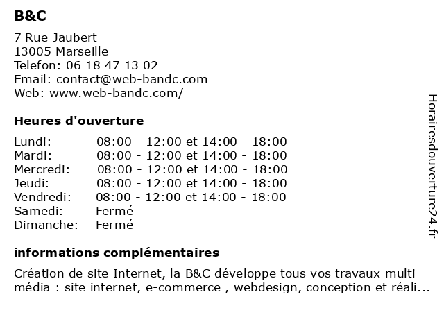 | Lundi | 08:00-12:00 et 14:00-18:00 |