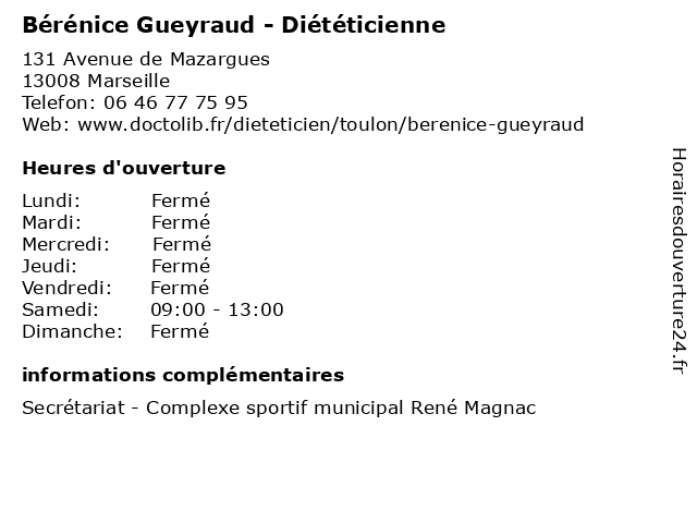1 Bérénice Gueyraud - Diététicienne (Distance: 8,06 km) 36 Avenue Frédéric Mistral, 13013 Marseille actes et symptômes, bérénice, diététicien, diététicienne, expertises, gueyraud, nutrition du sportif, secrétariat, Éducation au diabètec 2 Alisa Zemour - Diététicienne (Distance: 0,26 km) 14 Rue Raphaël, 13008 Marseille alimentation, alisa, dieteticien, diététicienne, nourriture, sante, zemour 3 Marjorie Alarçon - Diététicienne (Distance: 0,27 km) 14 Rue Raphaël, 13008 Marseille alarçon, alimentation, dieteticien, diététicienne, marjorie, nourriture, sante 4 Laura Vannieri - Diététicienne (Distance: 0,29 km) 21 Boulevard Barral, 13008 Marseille consultation, diététicien, diététicienne, docteur, laura, med, médecin, médecine, traitement, vannieri 5 Ilona Benjamin - Diététicienne (Distance: 0,47 km) 265 Avenue de Mazargues, 13008 Marseille aliment, benjamin, dieticien, diététicienne, ilona, medecin, nutrition 6 Elodie Civettini - Diététicienne (Distance: 0,58 km) 2 Boulevard Michelet, 13008 Marseille alimentation, civettini, dieteticien, diététicienne, elodie, nourriture, sante |