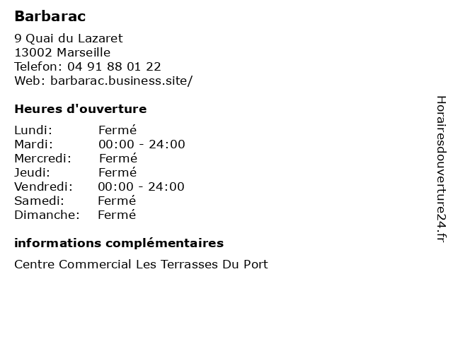 | Samedi | Fermé |