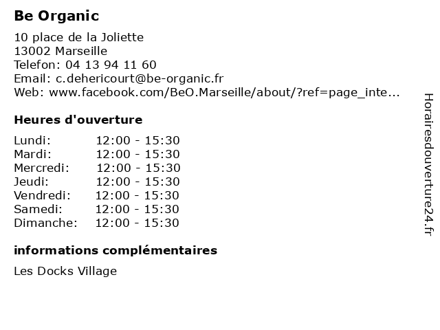 | Mercredi | 12:00-15:30 |