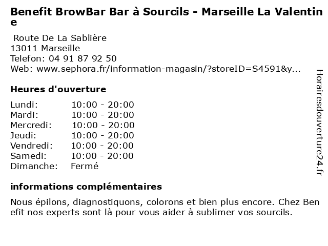 Termes de recherche pour Benefit BrowBar Bar à Sourcils - Marseille La Valentine:la, bar, marseille, valentine, salon de beauté, benefit, sourcils, magasin de produits cosmétiques, browbar |