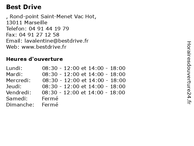 1 Best Drive (Distance: 2,18 km) 522 chemin, 13016 MARSEILLE battery, best, brakes, drive, emptying, exhaust, shock absorbers, suspension, transmission 2 Best Drive (Distance: 9,66 km) n/a Saint Menet, 13011 MARSEILLE battery, best, brakes, drive, emptying, exhaust, shock absorbers, suspension, transmission 3 Best Drive (Distance: 15,09 km) n/a Route, 13400 Aubagne battery, best, brakes, drive, emptying, exhaust, shock absorbers, suspension, transmission 4 Best Drive (Distance: 19,90 km) 135 avenue Mayor, 13100 AIX-EN-PROVENCE battery, best, brakes, drive, emptying, exhaust, massa, pneus, shock absorbers, suspension, transmission 5 6 Hôtel Best Western (Distance: 0,52 km) 16 Cours Belsunce, 13001 Marseille accès, best, et, hebergement, hotel, hôtel, réception, western |