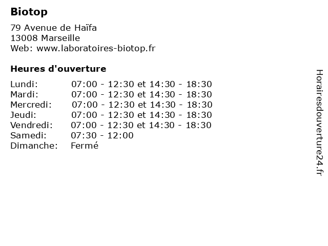 | Lundi | 07:00-12:30 et 14:30-18:30 |
