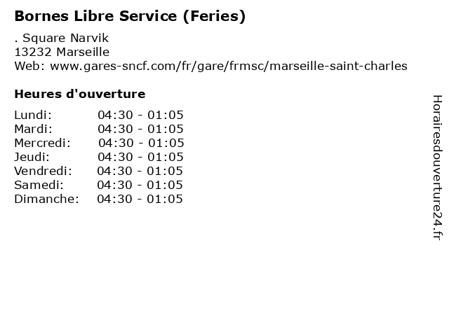 | Dimanche | 04:30-01:05 |
