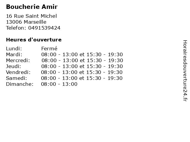 Samedi | 08:00-13:00 et 15:30-19:30 |
