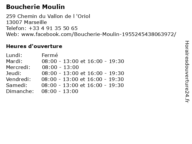 | Mardi | 08:00-13:00 et 16:00-19:30 |