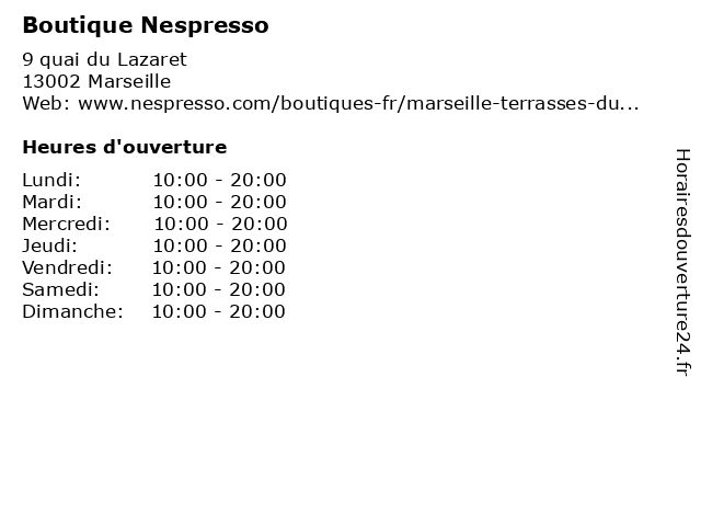 | Dimanche | 10:00-20:00 |