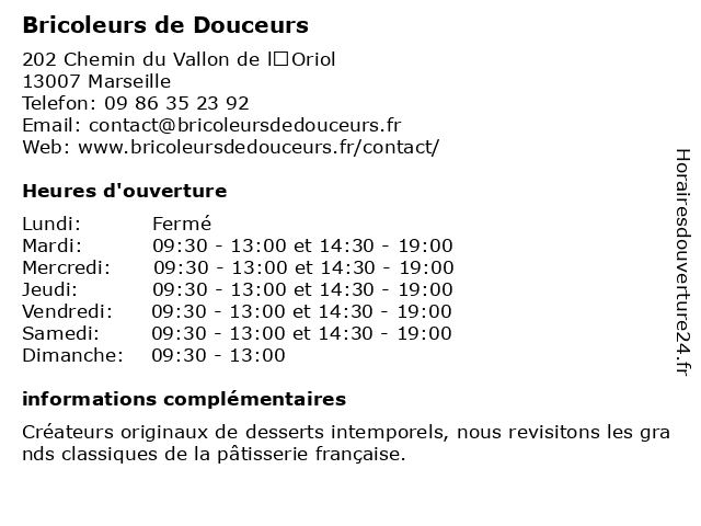 | Mardi | 09:30-13:00 et 14:30-19:00 |