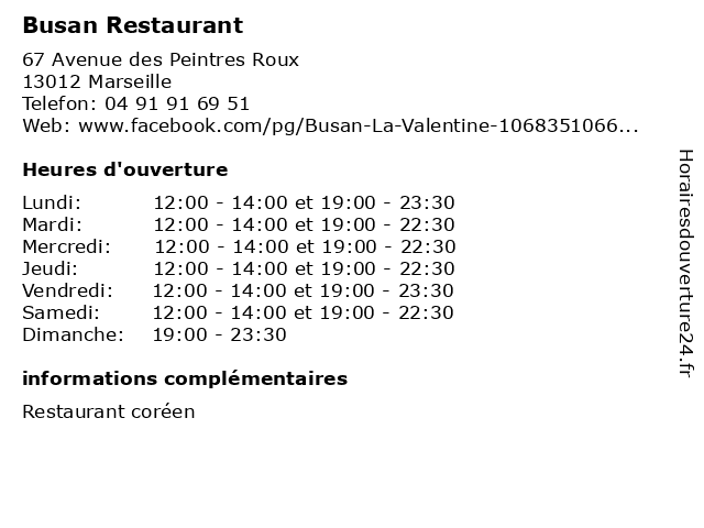 | Jeudi | 12:00-14:00 et 19:00-22:30 |
