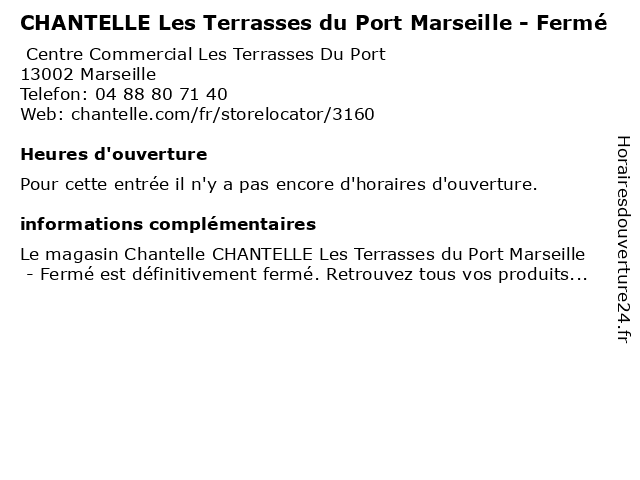| Appeler CHANTELLE Les Terrasses du Port Marseille - Fermé | |