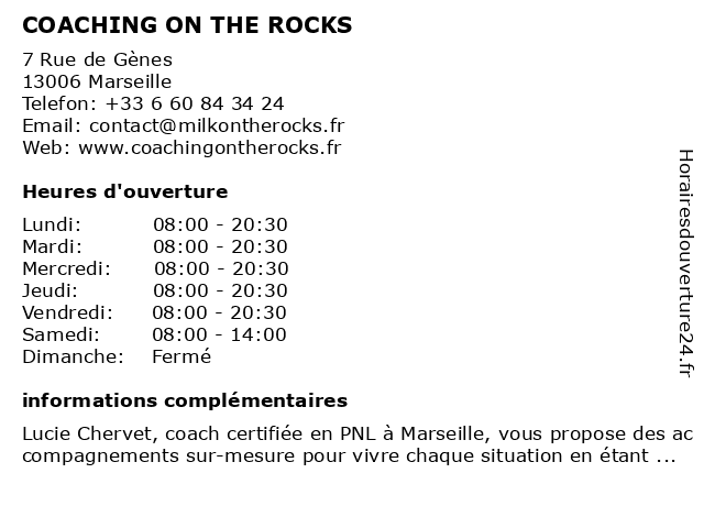 Termes de recherche pour COACHING ON THE ROCKS:the, on, coaching, rocks, analyse transactionnelle, programmation neuro linguistique, burn out / gestion du stress, coaching en entreprise, coaching individual, coaching pnl individuel et collectif, praticienne certifiée en pnl |
