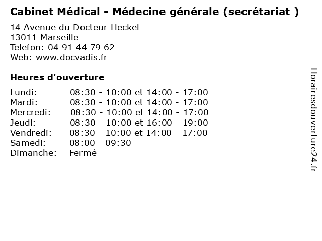 | Mercredi | 08:30-10:00 et 14:00-17:00 |